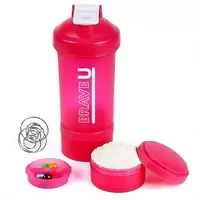 Шейкер 3 в 1 – зручне рішення для спорту. Завдяки знімним контейнерам можна розмішати кілька напоїв, просто додавши до контейнерів потрібну порцію. Наприклад, перед тренеруванням розмішати BCAA або передтрени, а після - гейнер або протеїн. При цьому шейкер вміщує відсік для таблеток.